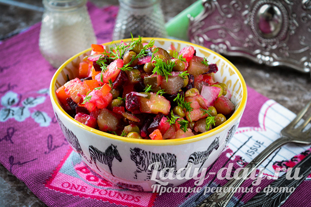 Стряпаем винегрет, рецепт классический с горошком и солеными огурцами