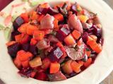 Если у вас в домашних резервах еще остались соленые грибы и огурцы, приготовьте винегрет с солеными грибами – это скоро, просто и вкусно. Винегрет – отличная закуска и дополнение к горячим блюдам.