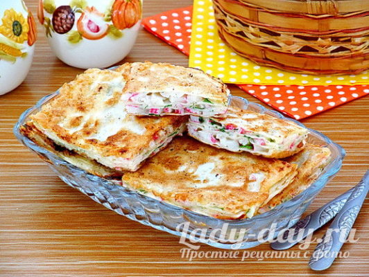 Закуска из лаваша с крабовыми палочками, рецепт с фото пошагово: