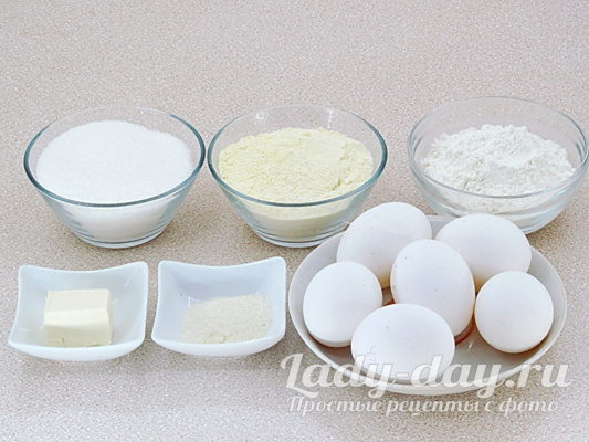 Делюсь мастер-классом приготовления воздушного бисквита с кукурузной мучением, без соды и других разрыхлителей. Выпечка из одной кукурузной муки грубовата, а вот в союзе с пшеничной мукой получается буквально воздушной, мягкой и весьма вкусной.