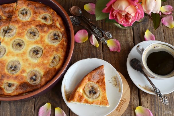 Эта творожная запеканка готовится без сахара, сладость подают бананы, но если желаете, подстластите выпечку стевией — такая замена позволит снизить калорийность блюда. Запеканка из творога, сметаны, яйца, манки и банана готовится в течение часа. Неплоха она как в теплом, так и в холодном виде. Подать ее к чаю или на полдник со сметаной, вареньем или протертой земляникой.
