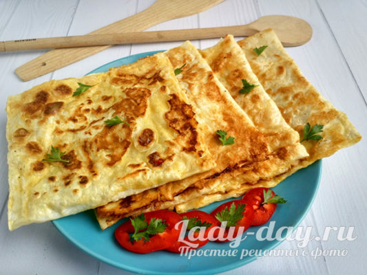 Готовые лаваши выкладывать на блюдо с бумажным утиральником для удаления излишков жира.