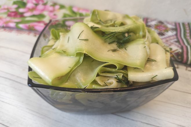 Закуска из кабачков, несложная и в тоже время оригинальная, готовиться быстро и просто! Сами по себе молодые кабачки очень нежные, а в сочетании с пикантной заправкой получаются попросту восхитительными!
